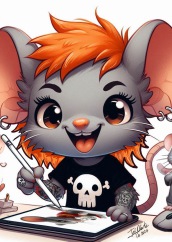 Estos últimos años, desde febrero de 2024 he incorporado a mis diseños al pequeño ratoncito gris, este gracioso personaje inspirado en mis propios hámster (he tenido bastantes en mi vida) que he ido "humanizando" gracias en parte a la I.A. y al dibujo digital con el que consigo dar la magia a los dibujos. Hay ratoncitos para todas las épocas del año, en todas las situaciones imaginables. He creado también mis propios sticker para Whatsapp con un amplio abanico de reacciones que dan un toque tierno y divertido a tus conversaciones.